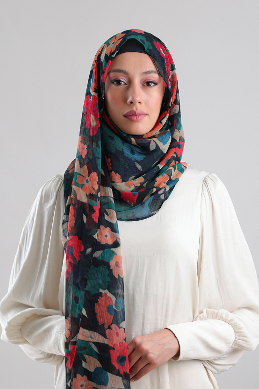 • FREESTYLE: hijab is a one piece pre-sewn long rectangular shawl. Made of printed chiffon and lined with 100% cotton for opacity and structure. Match it with the straight Bokitta Inner, Cross Inner or both with the 2-in-1 Inner