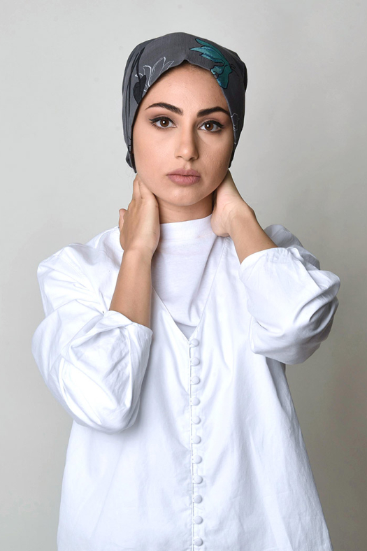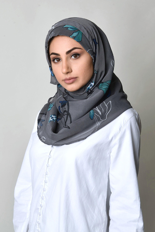 • FREESTYLE hijab is a one piece pre-sewn long rectangular shawl. Made of printed chiffon and lined with 100% cotton for opacity and structure. Match it with the straight Bokitta Inner or Cross Inner (sold separately)