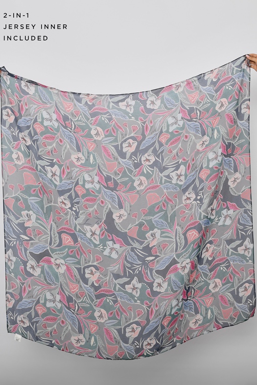 • FREESTYLE hijab is a one piece pre-sewn long rectangular shawl. Made of printed chiffon and lined with 100% cotton for opacity and structure. Match it with the straight Bokitta Inner or Cross Inner