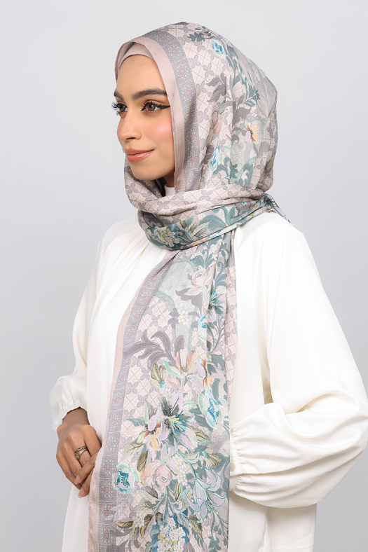• FREESTYLE : hijab is a one piece pre-sewn long rectangular shawl. Made of printed chiffon and lined with 100% cotton for opacity and structure. Match it with the straight Bokitta Inner.