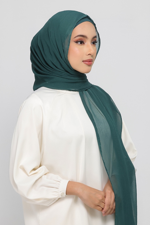 Forest green - plain crinkled chiffon