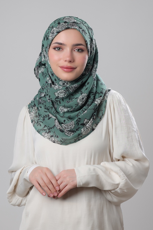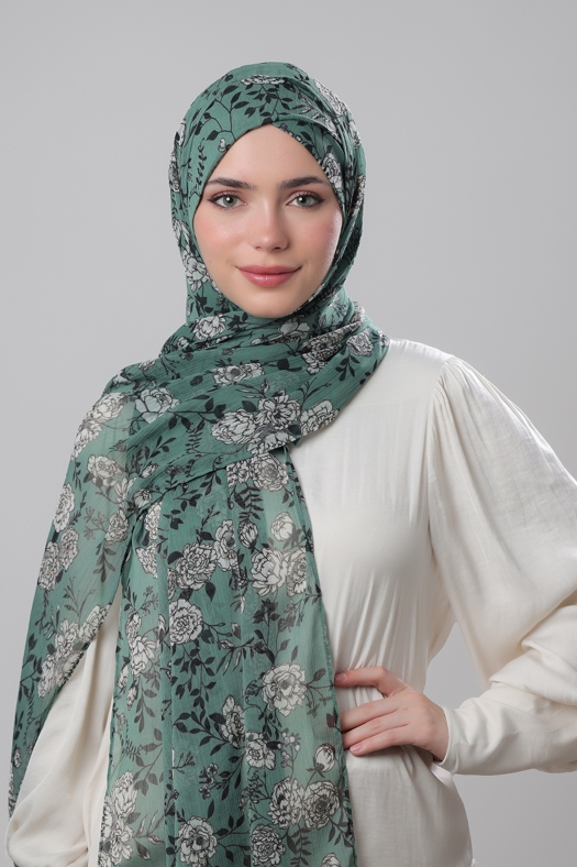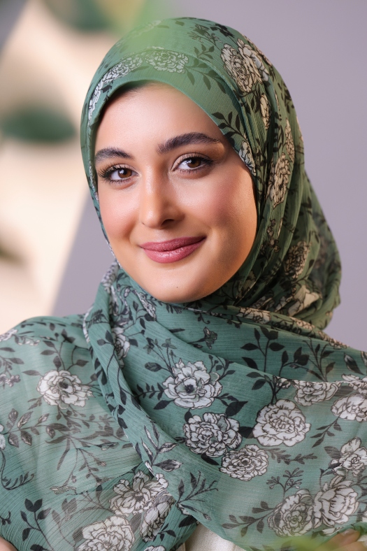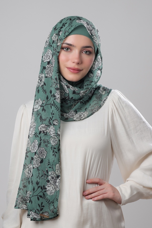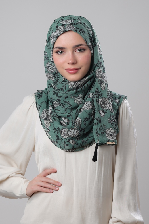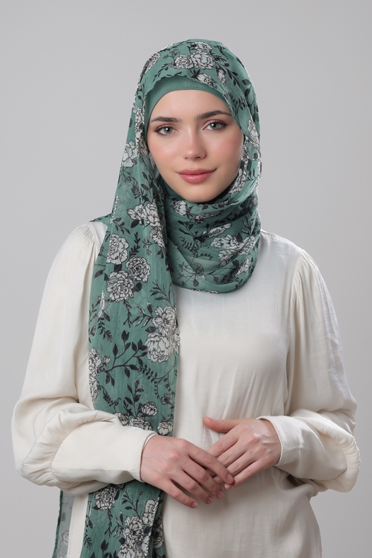 • FREESTYLE hijab is a one piece pre-sewn long rectangular shawl. Made of printed chiffon and lined with 100% cotton for opacity and structure. Match it with the straight Bokitta Inner or Cross Inner