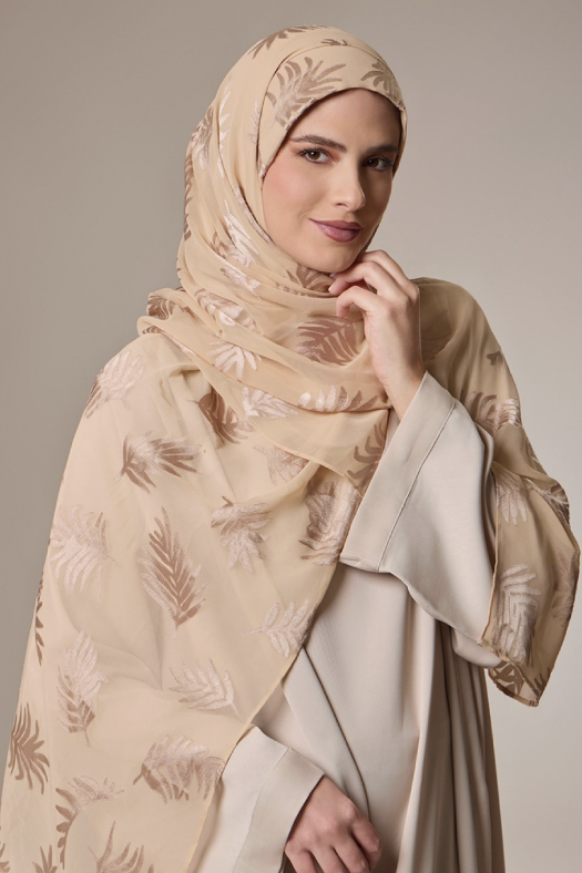 • FREESTYLE: hijab is a one piece pre-sewn long rectangular shawl. Made of printed chiffon and lined with 100% cotton for opacity and structure. Match it with the straight Bokitta Inner or Cross Inner