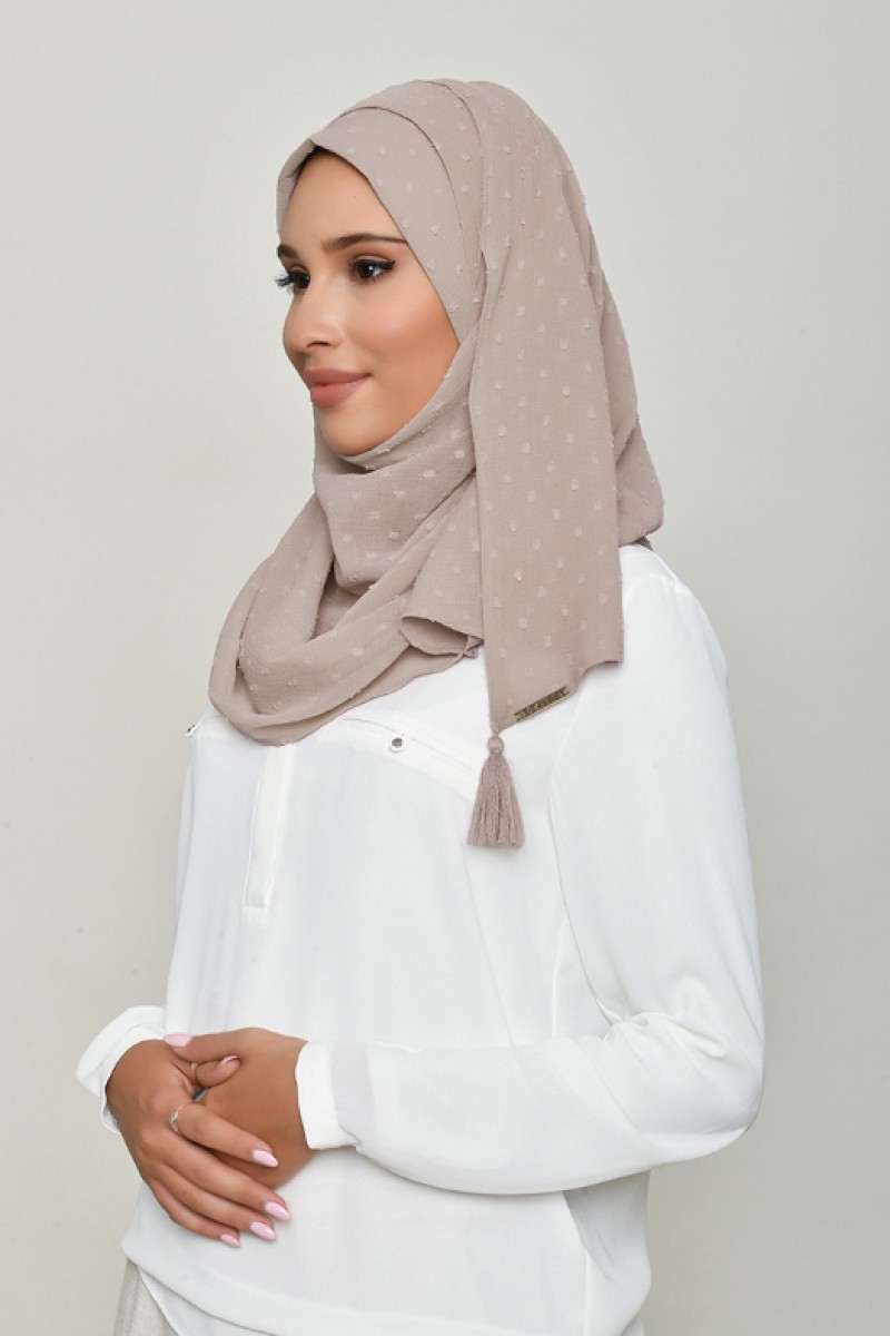 Greige - Plain Swiss Dot Chiffon