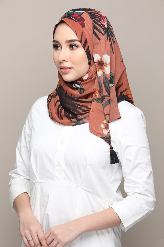 • FREESTYLE hijab is a one piece pre-sewn long rectangular shawl. Made of printed chiffon and lined with 100% cotton for opacity and structure. Match it with the straight Bokitta Inner or Cross Inner (sold separately)
