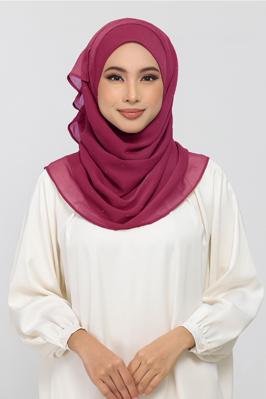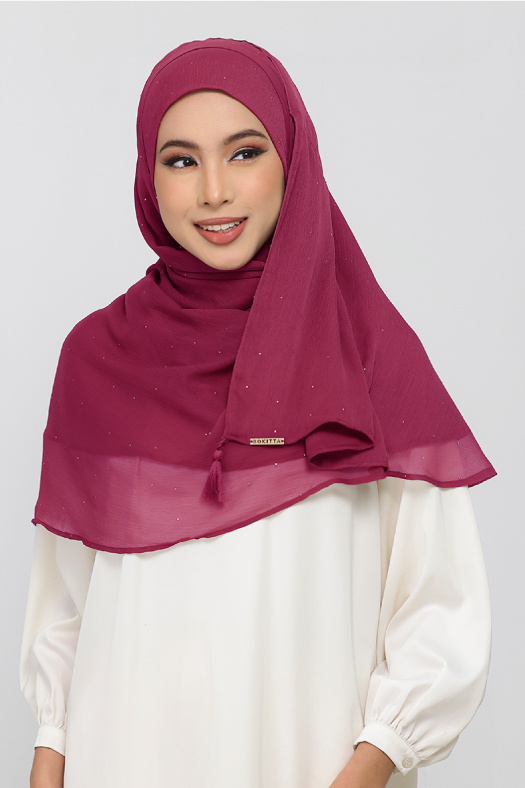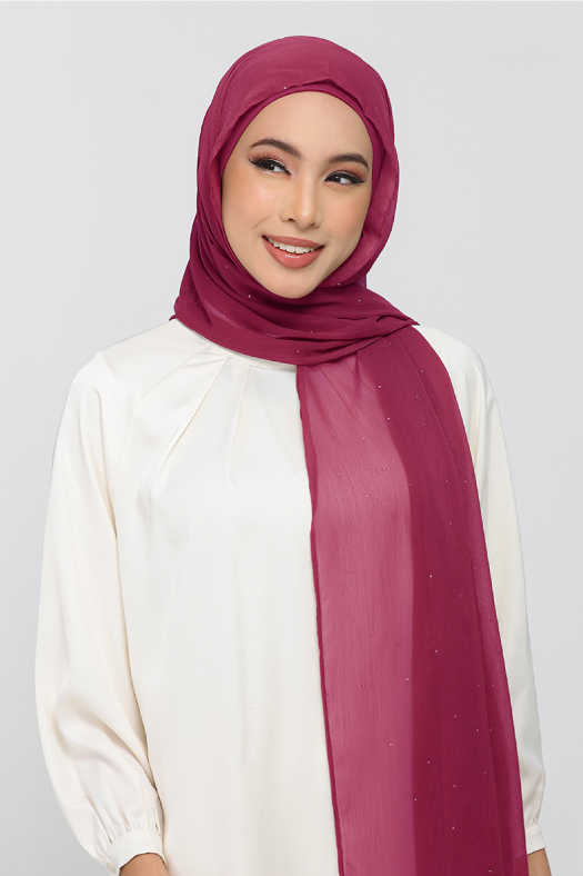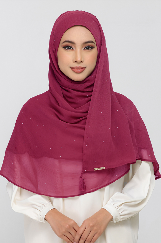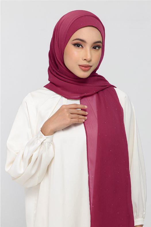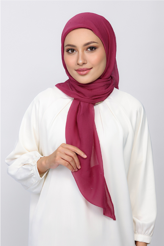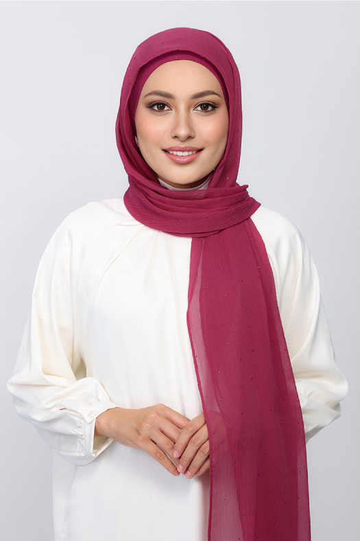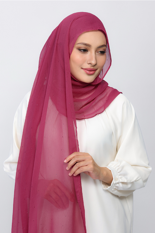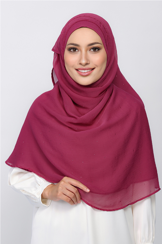 Hot Pink - Plain Crinkled Chiffon Crystals