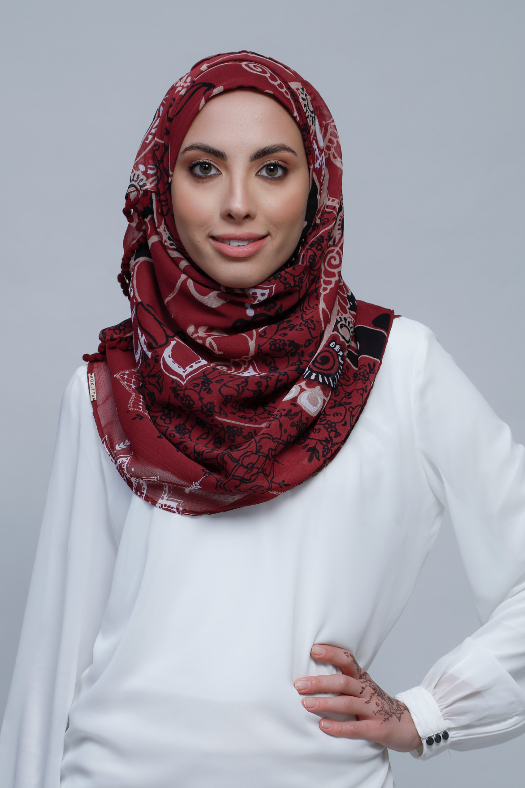 • FREESTYLE hijab is a one piece pre-sewn long rectangular shawl. Made of printed chiffon and lined with 100% cotton for opacity and structure. Match it with the straight Bokitta Inner or Cross Inner