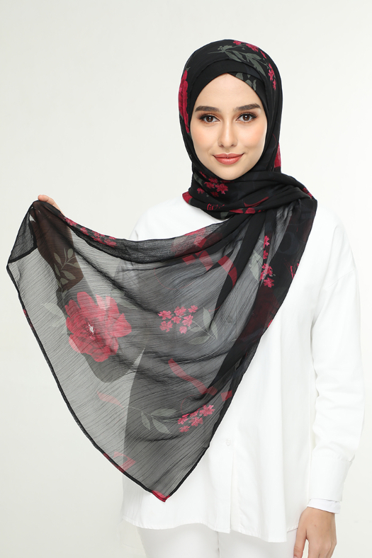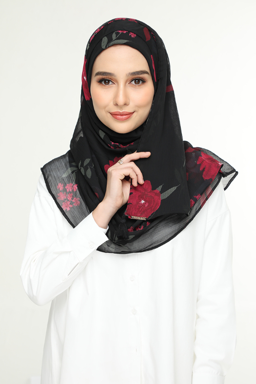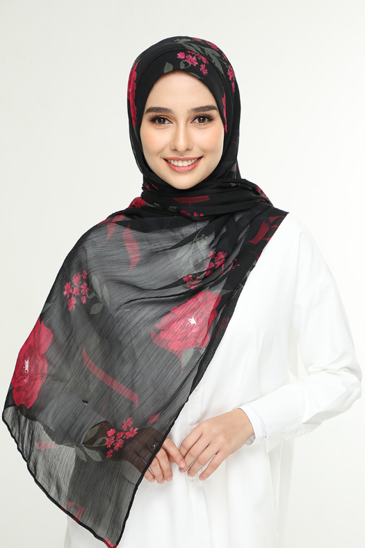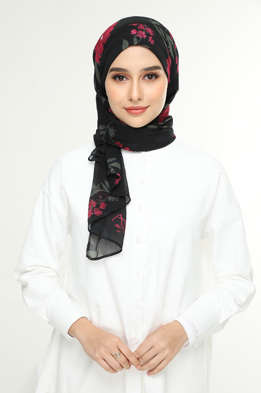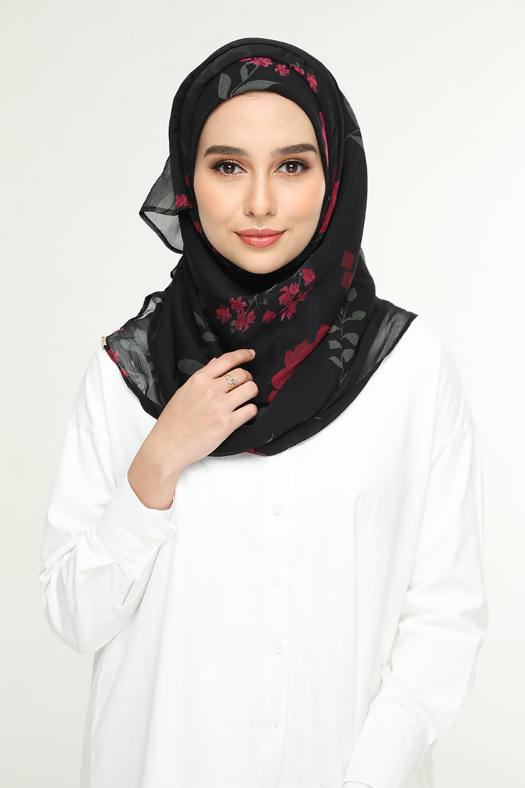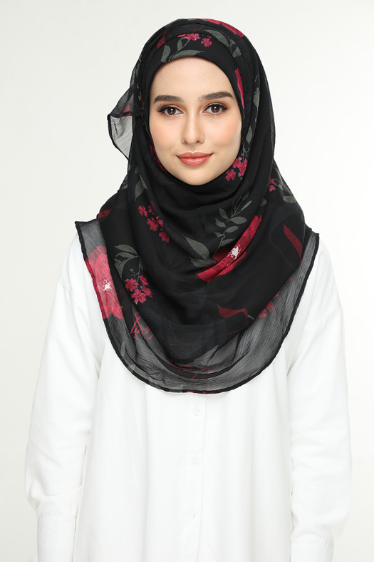 • FREESTYLE hijab is a one piece pre-sewn long rectangular shawl. Made of printed chiffon and lined with 100% cotton for opacity and structure. Match it with the straight Bokitta Inner or Cross Inner (sold separately)
