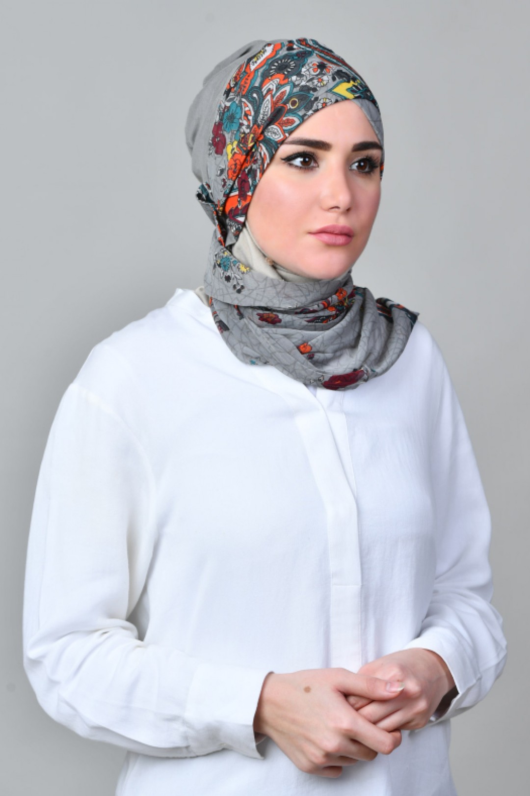 • FREESTYLE hijab is a one piece pre-sewn long rectangular shawl. Made of printed chiffon and lined with 100% cotton for opacity and structure. Match it with the straight Bokitta Inner or Cross Inner (sold separately)