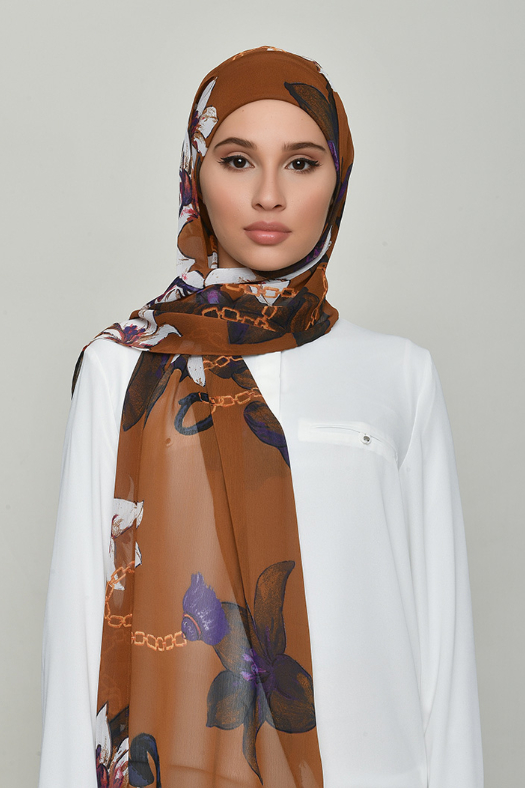 • FREESTYLE hijab is a one piece pre-sewn long rectangular shawl. Made of printed chiffon and lined with 100% cotton for opacity and structure. Match it with the straight Bokitta Inner or Cross Inner (sold separately)