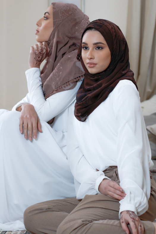 • FREESTYLE hijab is a one piece pre-sewn long rectangular shawl. Made of printed chiffon and lined with 100% cotton for opacity and structure. Match it with the straight Bokitta Inner or Cross Inner