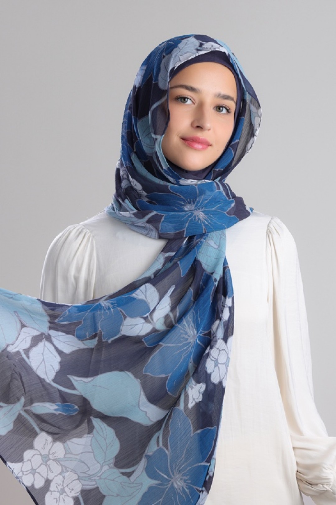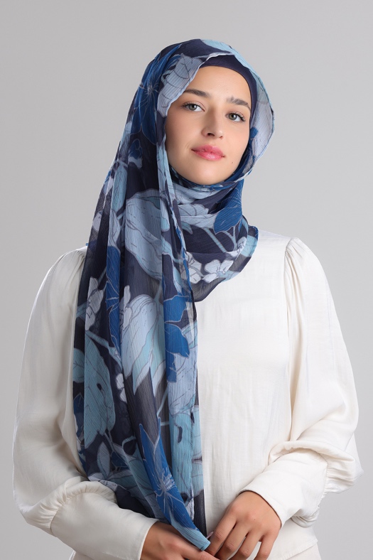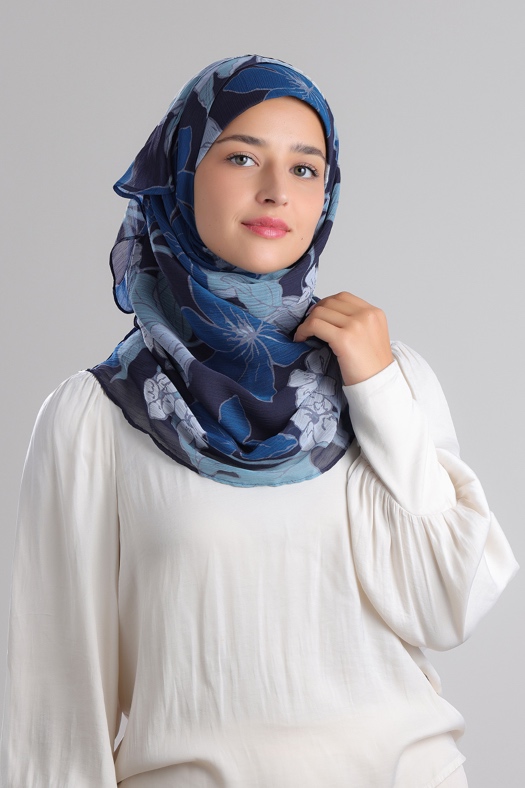 • FREESTYLE hijab is a one piece pre-sewn long rectangular shawl. Made of printed chiffon and lined with 100% cotton for opacity and structure. Match it with the straight Bokitta Inner or Cross Inner