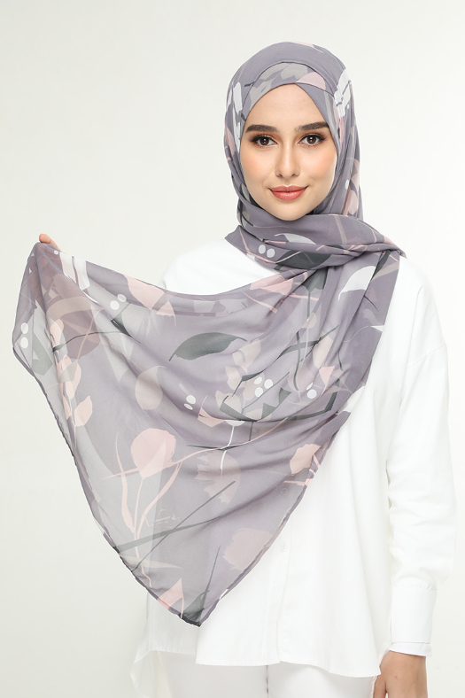 • FREESTYLE hijab is a one piece pre-sewn long rectangular shawl. Made of printed chiffon and lined with 100% cotton for opacity and structure. Match it with the straight Bokitta Inner or Cross Inner (sold separately)