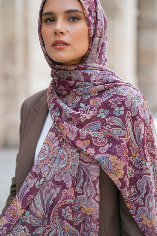 Mulberry Paisley - Printed Plus Crinkled Chiffon