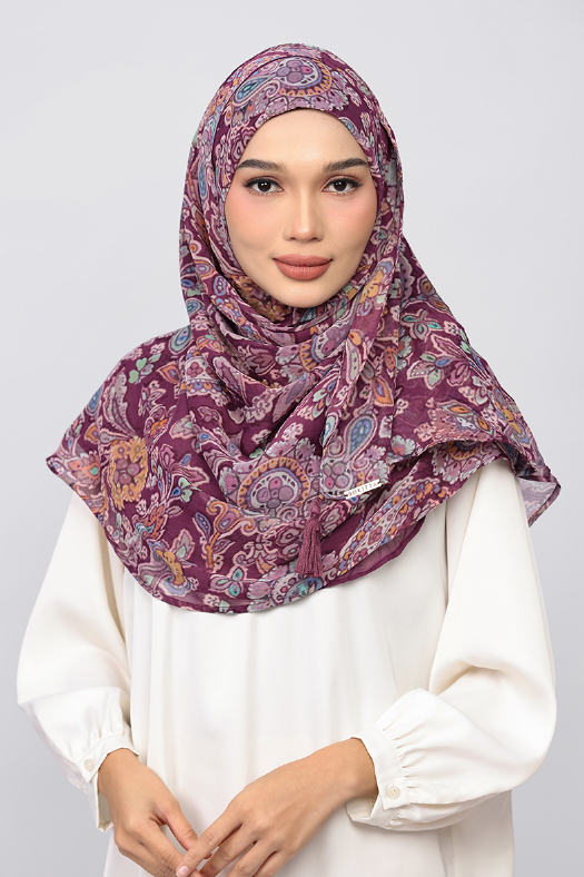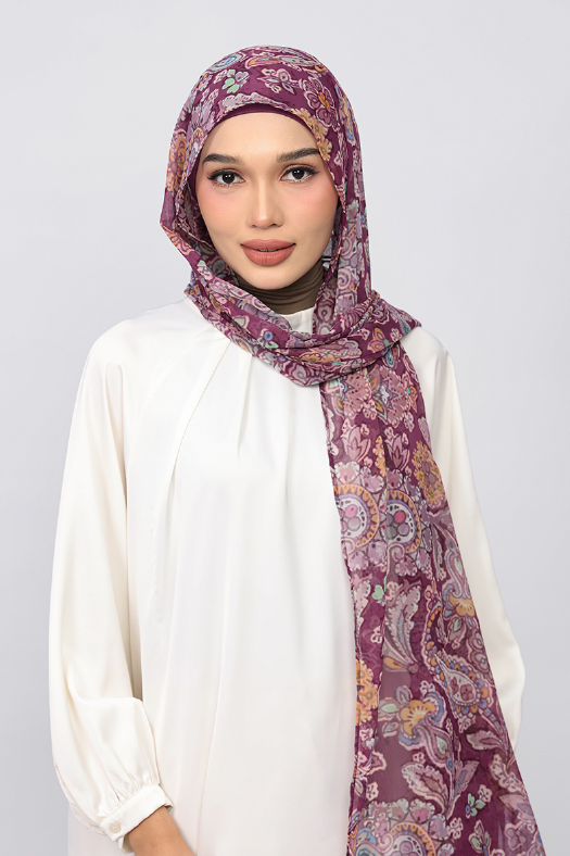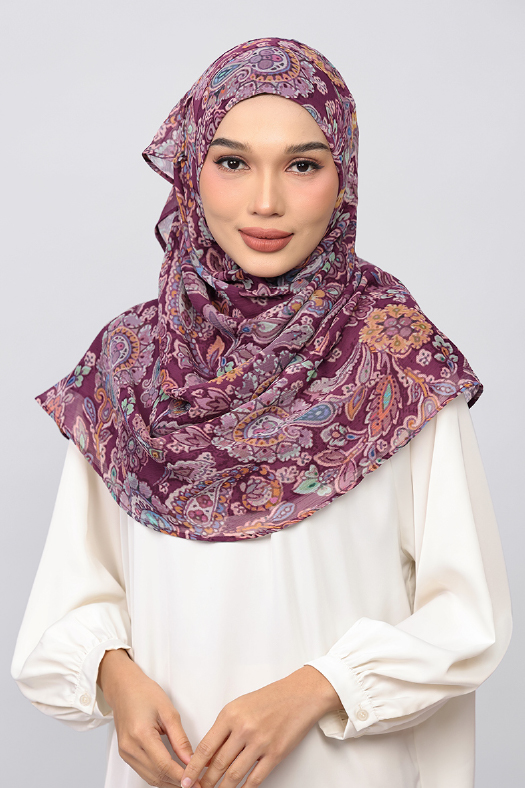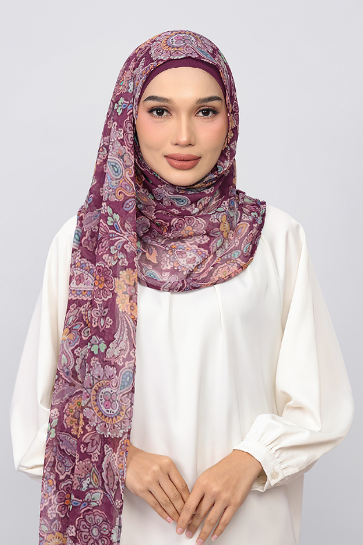 • FREESTYLE : hijab is a one piece pre-sewn long rectangular shawl. Made of printed chiffon and lined with 100% cotton for opacity and structure. Match it with the 2-in-1 straight Bokitta Inner or Cross Inner