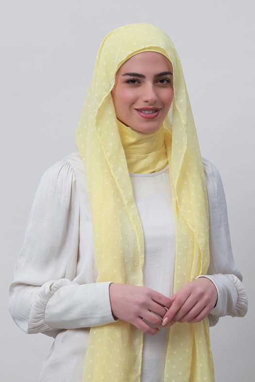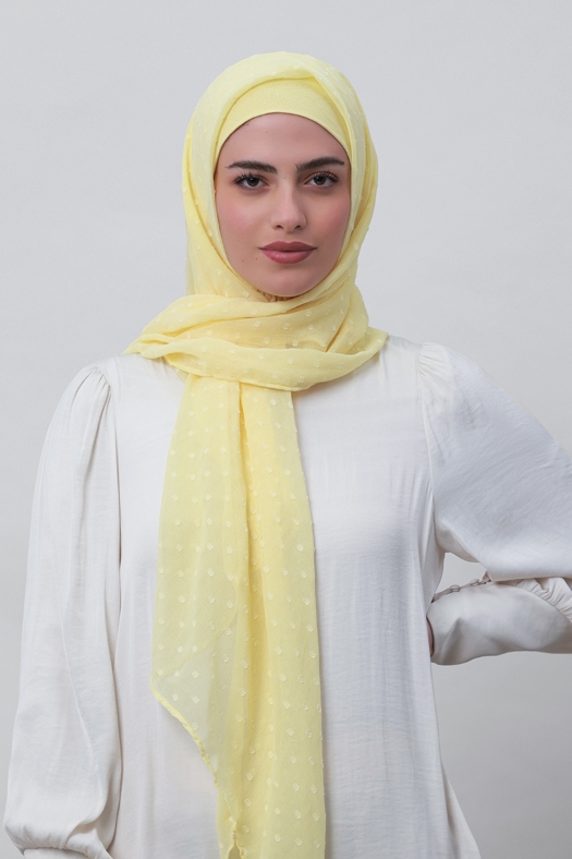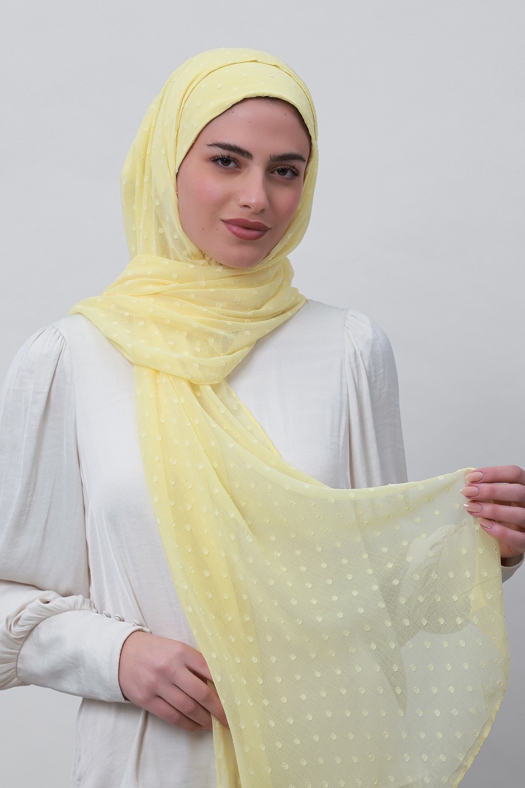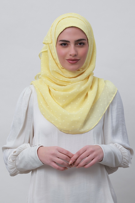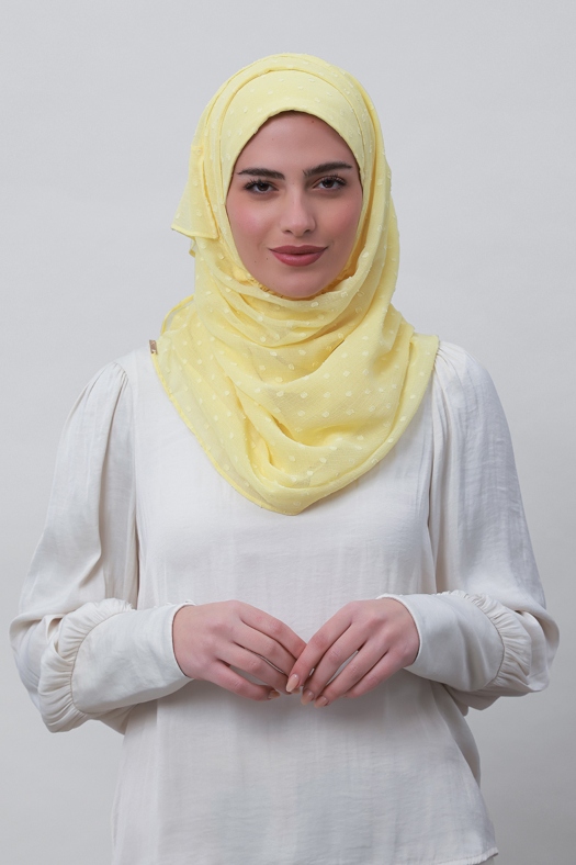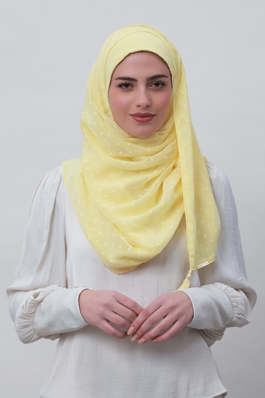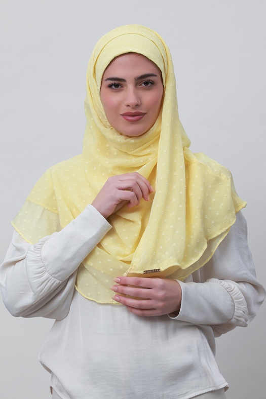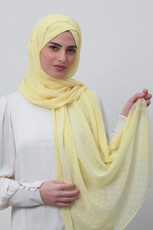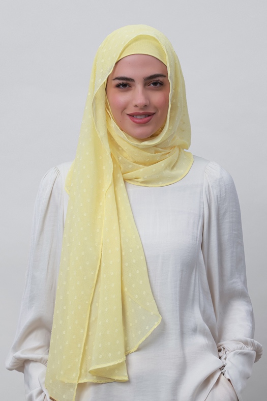 Pastel Yellow - Plain Mosaic Butti Chiffon