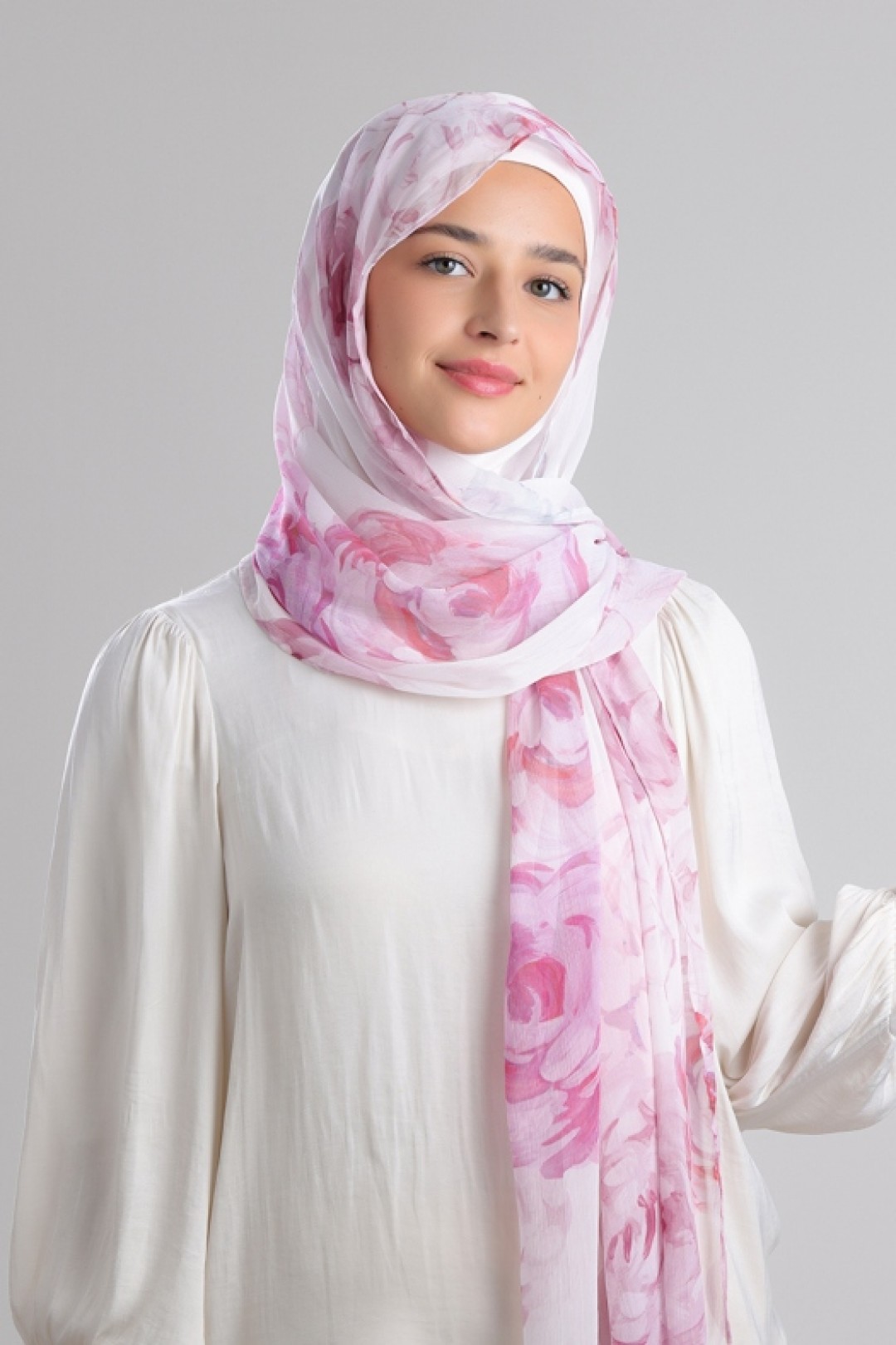 • FREESTYLE hijab is a one piece pre-sewn long rectangular shawl. Made of printed chiffon and lined with 100% cotton for opacity and structure. Match it with the straight Bokitta Inner or Cross Inner