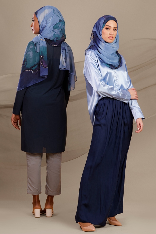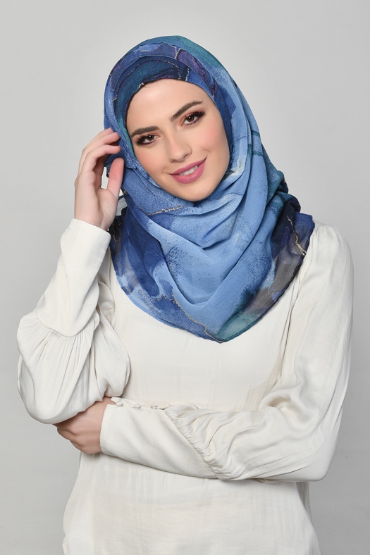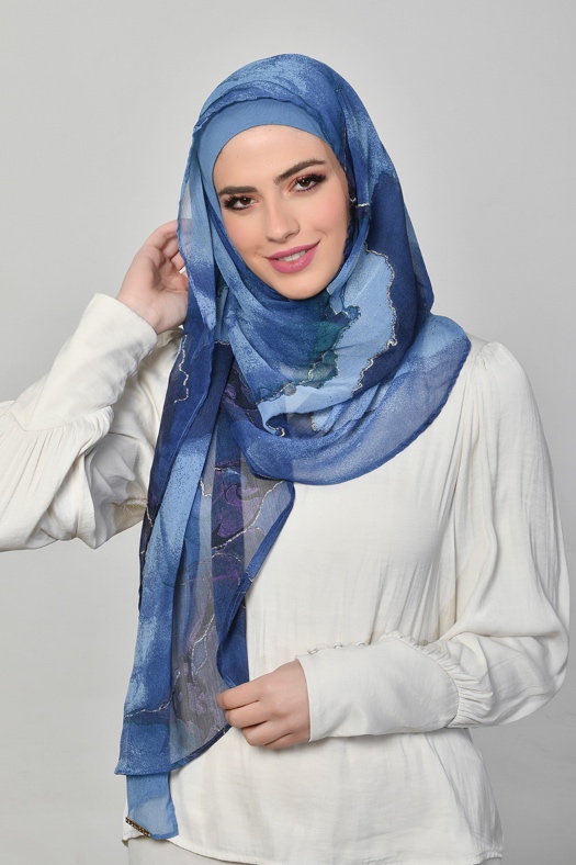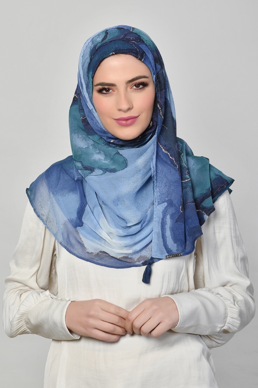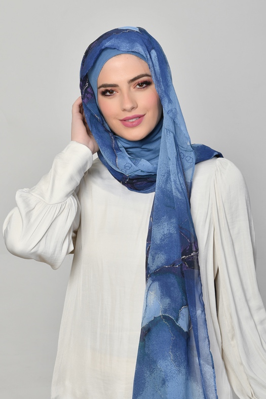 • FREESTYLE hijab is a one piece pre-sewn long rectangular shawl. Made of printed chiffon and lined with 100% cotton for opacity and structure. Match it with the straight Bokitta Inner or Cross Inner