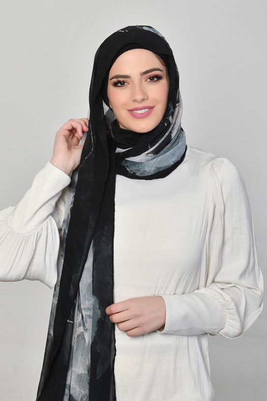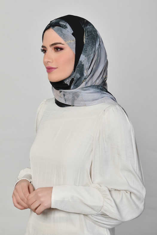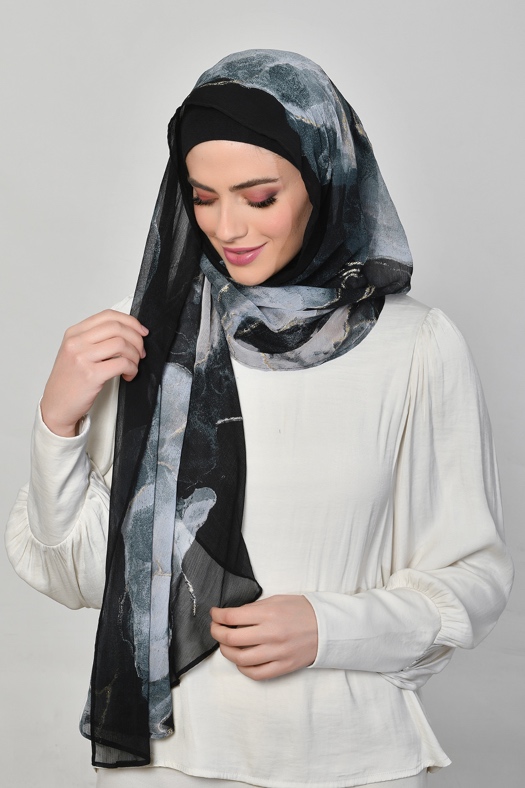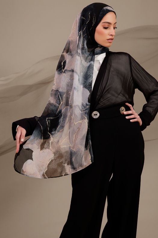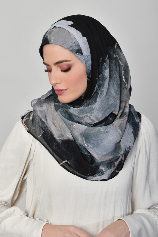 • FREESTYLE hijab is a one piece pre-sewn long rectangular shawl. Made of printed chiffon and lined with 100% cotton for opacity and structure. Match it with the straight Bokitta Inner or Cross Inner