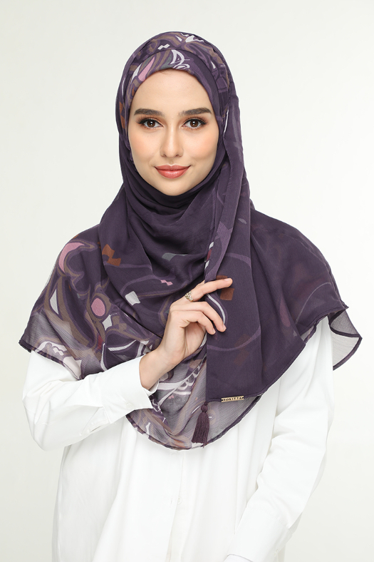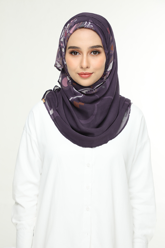 • FREESTYLE hijab is a one piece pre-sewn long rectangular shawl. Made of printed chiffon and lined with 100% cotton for opacity and structure. Match it with the straight Bokitta Inner or Cross Inner (sold separately)
