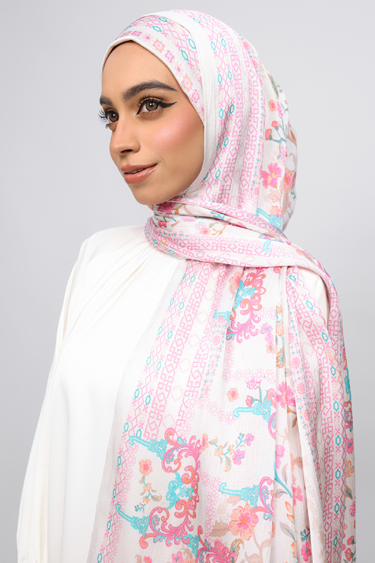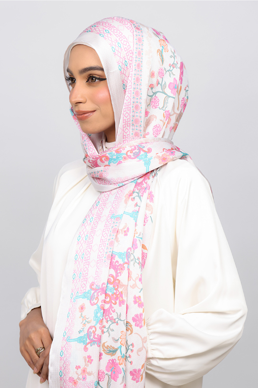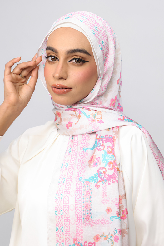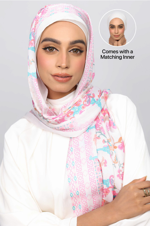 • FREESTYLE : hijab is a one piece pre-sewn long rectangular shawl. Made of printed chiffon and lined with 100% cotton for opacity and structure. Match it with the straight Bokitta Inner.