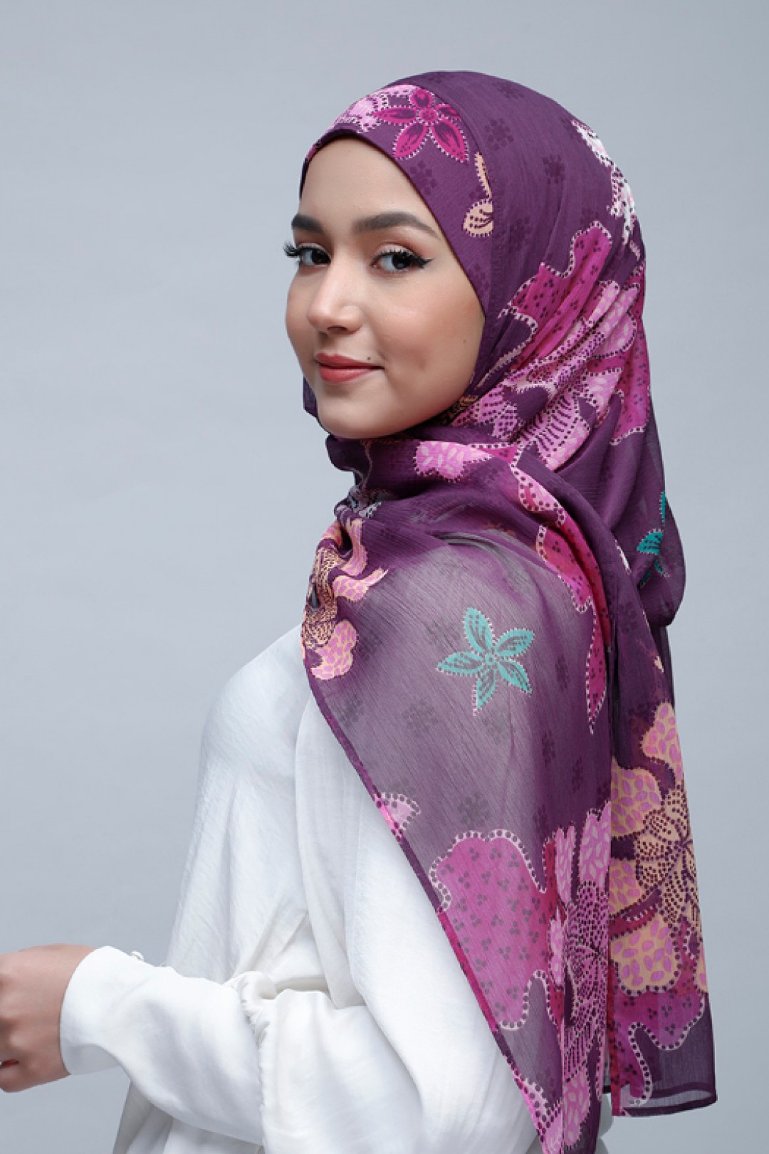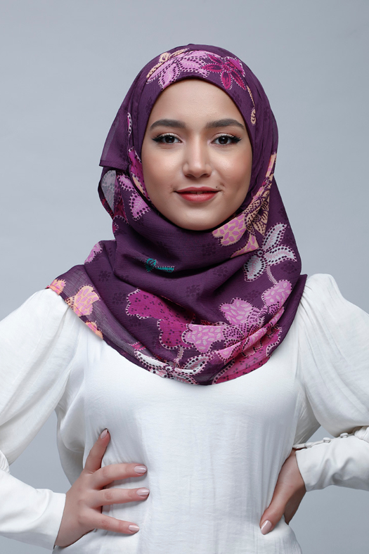 • FREESTYLE hijab is a one piece pre-sewn long rectangular shawl. Made of printed chiffon and lined with 100% cotton for opacity and structure. Match it with the straight Bokitta Inner or Cross Inner