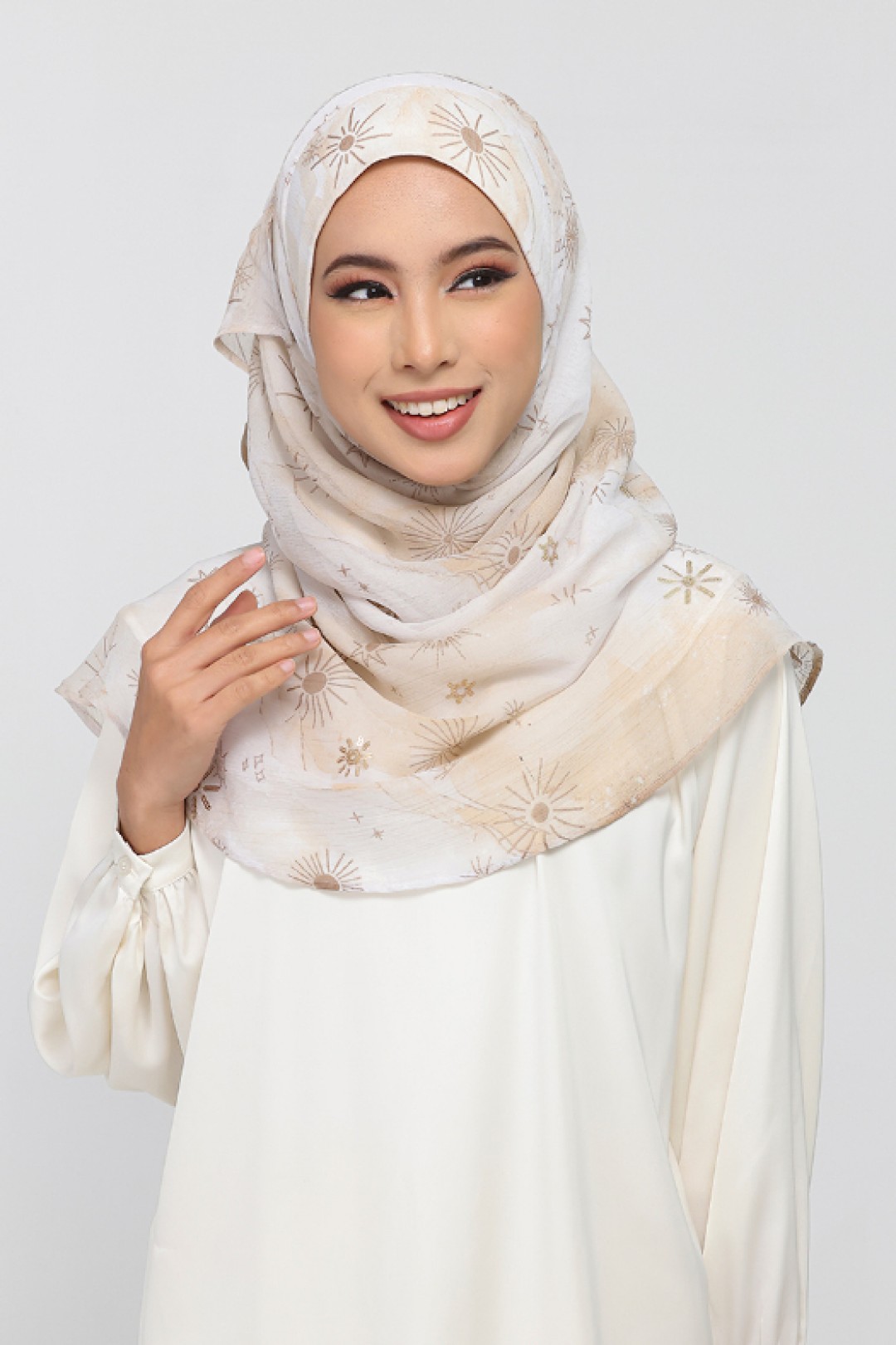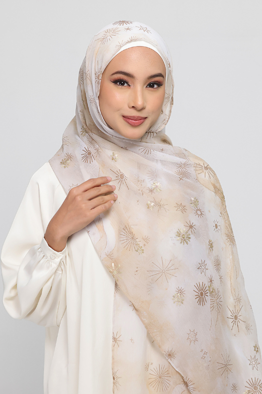 • FREESTYLE B INNER: hijab is a one piece pre-sewn long rectangular shawl. Made of printed chiffon and lined with 100% cotton for opacity and structure.
