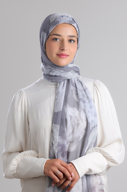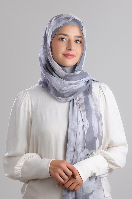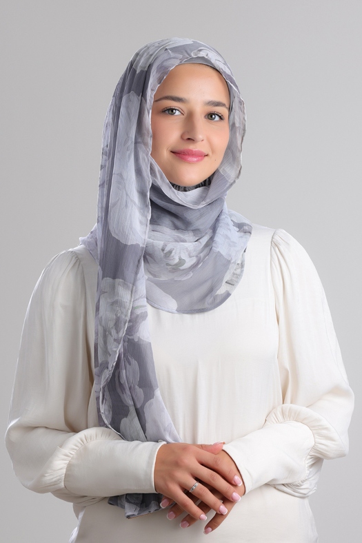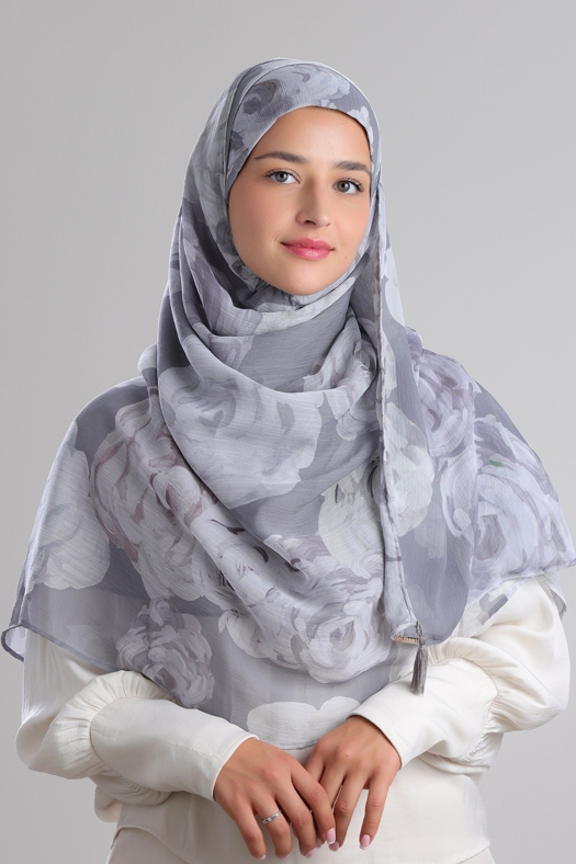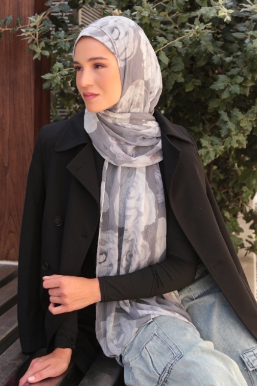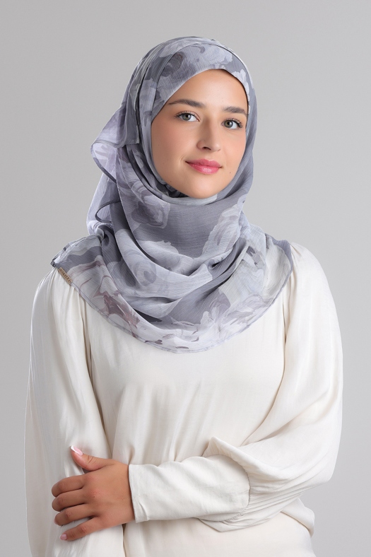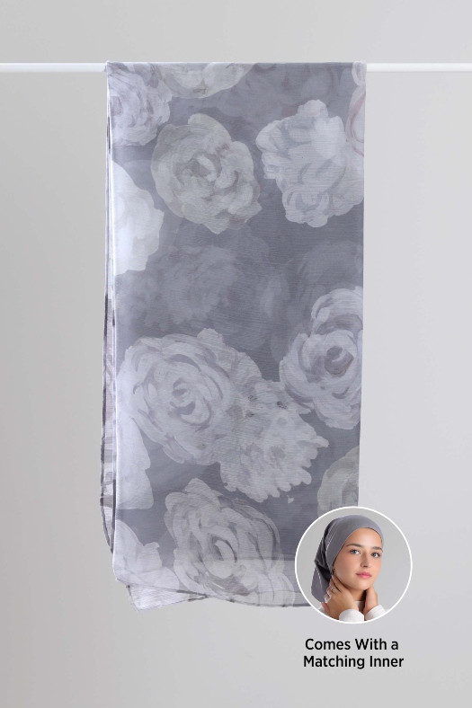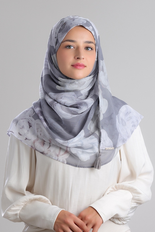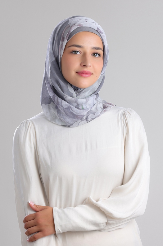 • FREESTYLE hijab is a one piece pre-sewn long rectangular shawl. Made of printed chiffon and lined with 100% cotton for opacity and structure. Match it with the straight Bokitta Inner or Cross Inner
