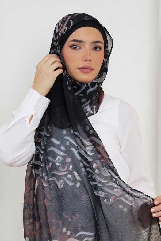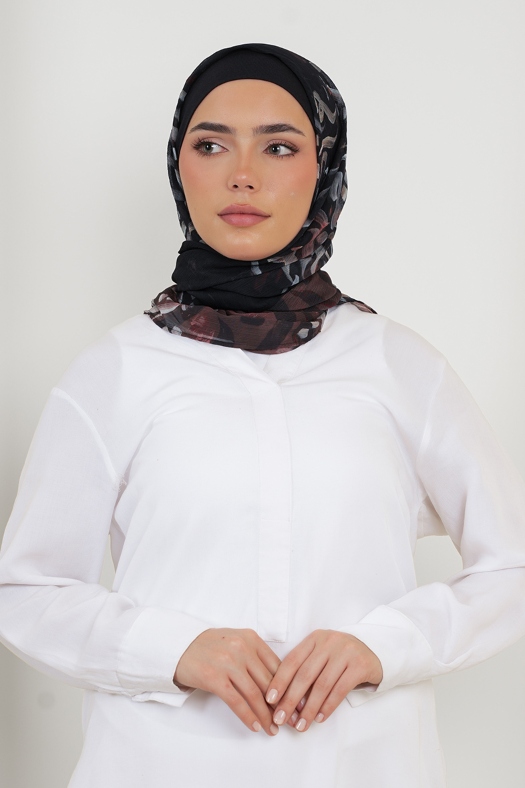 • FREESTYLE : hijab is a one piece pre-sewn long rectangular shawl. Made of printed chiffon and lined with 100% cotton for opacity and structure. Match it with the 2-in-1 straight Bokitta Inner or Cross Inner
