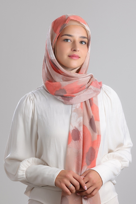 • FREESTYLE hijab is a one piece pre-sewn long rectangular shawl. Made of printed chiffon and lined with 100% cotton for opacity and structure. Match it with the straight Bokitta Inner or Cross Inner