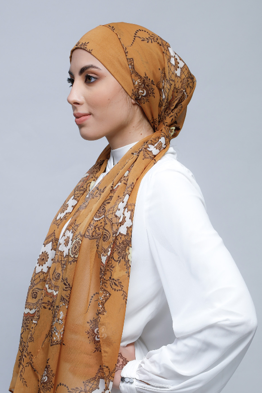 • FREESTYLE hijab is a one piece pre-sewn long rectangular shawl. Made of printed chiffon and lined with 100% cotton for opacity and structure. Match it with the straight Bokitta Inner or Cross Inner